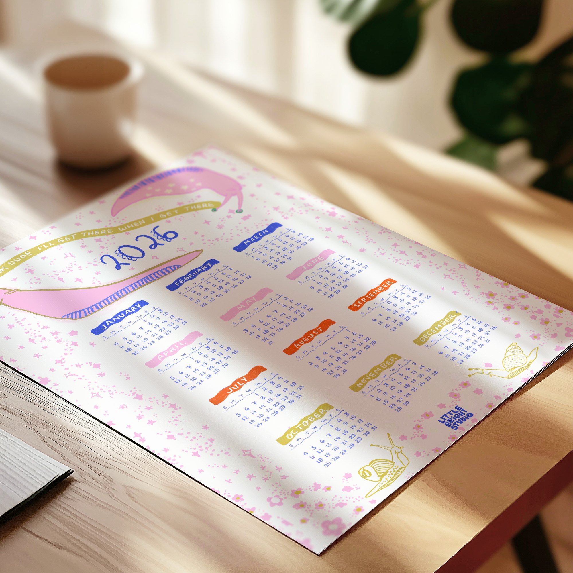 Slow as a slug, it's the 2026 SLUGENDAR! Measures 11x17, printed with archival ink. Ships flat.
