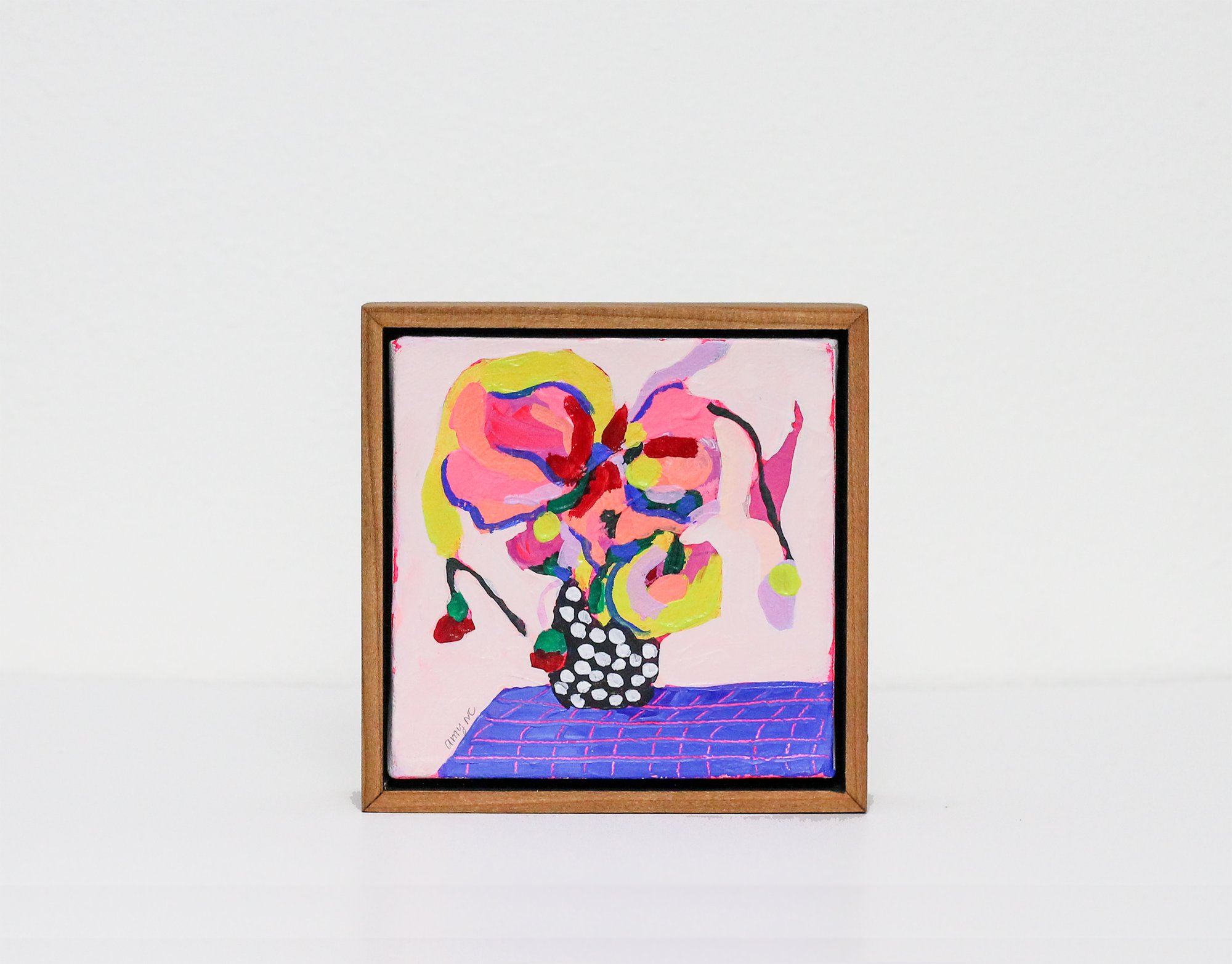 Flower Arrangement 1- 5x5" framed acrylic painting on canvas
