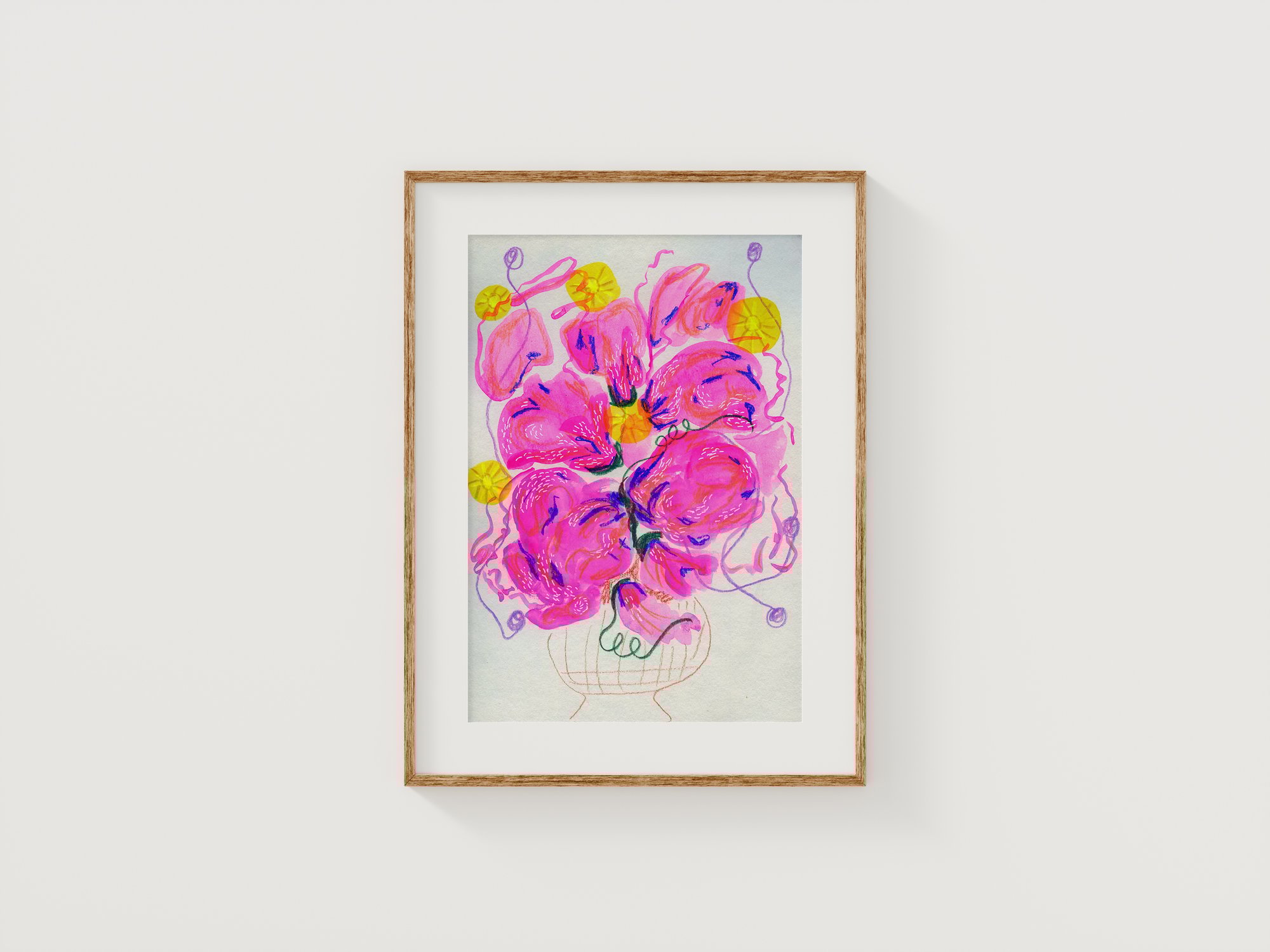 Floral bouquet in gouache layered with color pencil. Unframed.