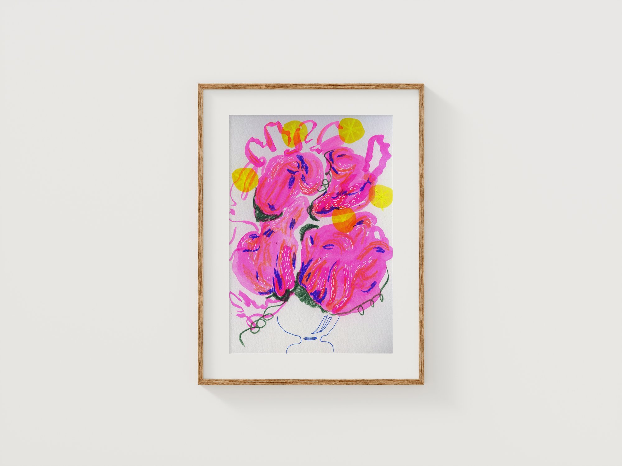 Floral bouquet in gouache layered with color pencil. Unframed.