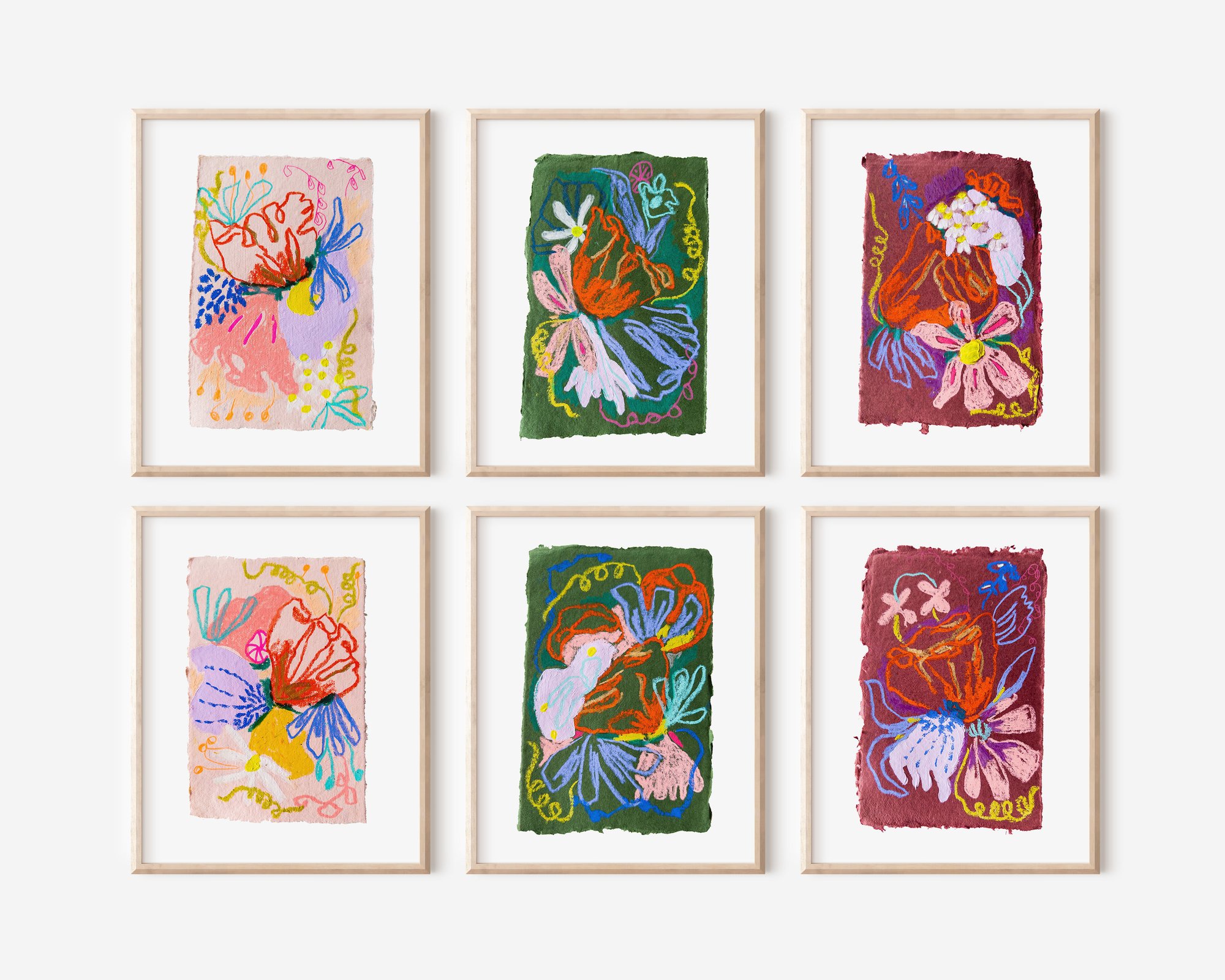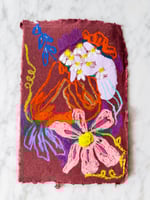 Oil Pastel Garden Flowers on dark plum handmade paper 2
