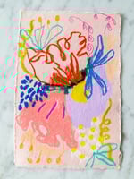 Oil Pastel Garden Flowers on pink handmade paper